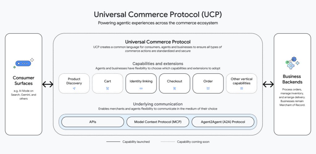 UCP is an open-source, vendor-agnostic standard that creates a “common language” between AI systems (like Gemini) and commerce platforms. Historically, shopping with an AI was fragmented; an agent could find a pair of shoes but couldn’t easily navigate a specific retailer’s checkout flow, apply loyalty points, or confirm local inventory.