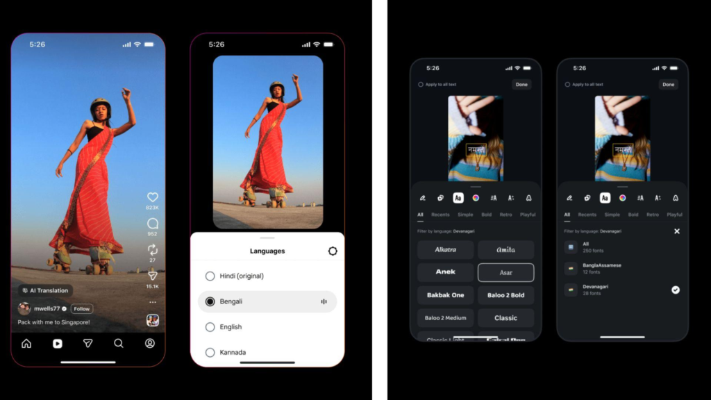 Alongside the voice features, Instagram has introduced native support for Indian scripts in its Edits tool. Creators can now use stylish typography for: