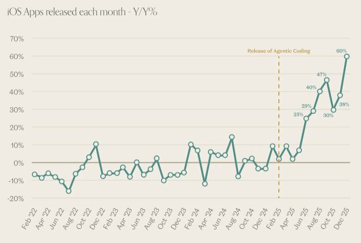 In January 2026, the iOS App Store is witnessing a massive surge in AI-powered coding applications. Driven by the rise of “agentic coding” and “vibe coding”โthe ability to build functional apps using only natural languageโnew app submissions jumped 60% in December 2025 compared to the previous year.