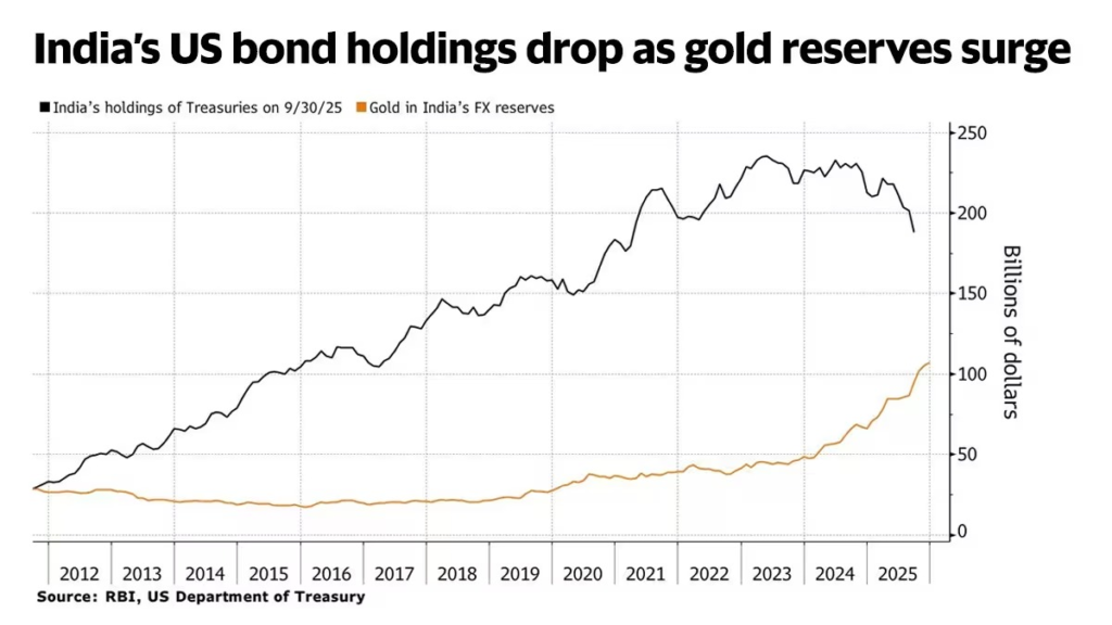 - Portfolio Shift: US Treasuries now account for approximately one-third of India’s total forex assets, down from 40% a year ago.