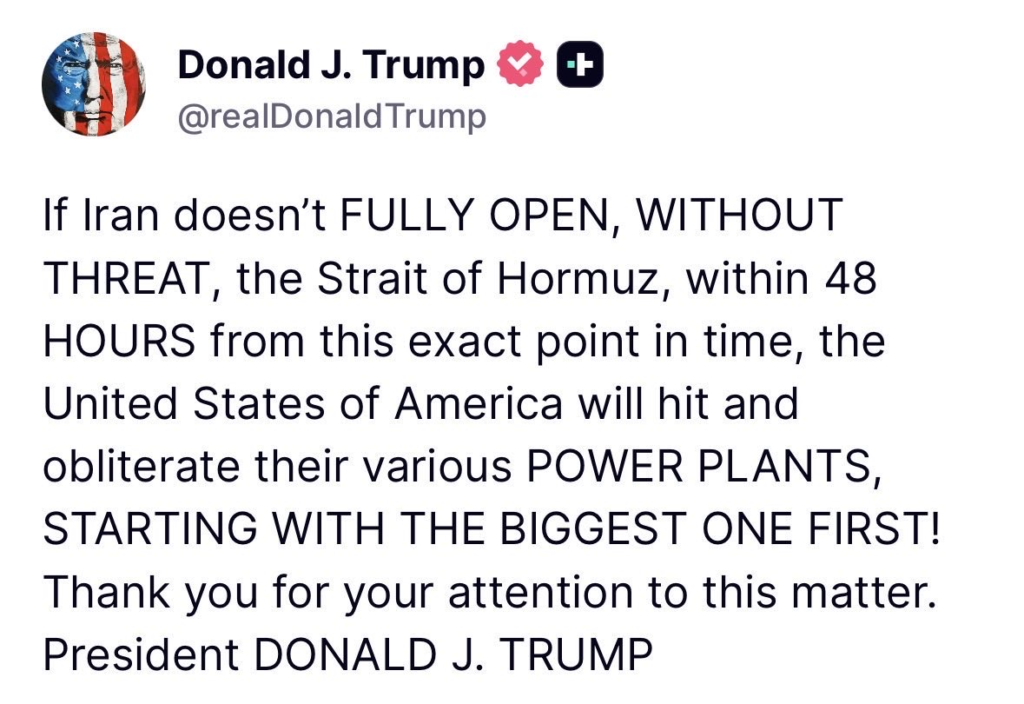 - The Threat: If the deadline passes, the U.S. will begin a campaign to destroy Iran’s power plants. Trump explicitly stated the strikes would start with “the biggest one first.”